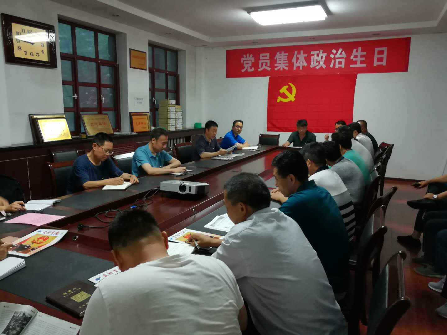 6月25日下午,后勤党委组织党委委员、各党支部委员、部分党员代表过集体政治生日,大家面对党旗,齐唱国际歌,重温入党誓词,党委负责同志致以节日的祝贺,提出今后的希望与要求,集体学习了《习近平新时代中国特色社会主义思想三十讲》部分论述,牢固树立“四个意识”,坚定“四个自信”,做到“四个服从”,切实用讲话精神统一思想、凝心聚力,推动全面从严治党向纵深发展。大家热烈讨论交流,回顾申请入党时的思想激情和奋斗追求,回顾入党宣誓时的庄严承诺和坚定决心,进一步增强党员意识和党性意识,永葆共产党员政治本色。