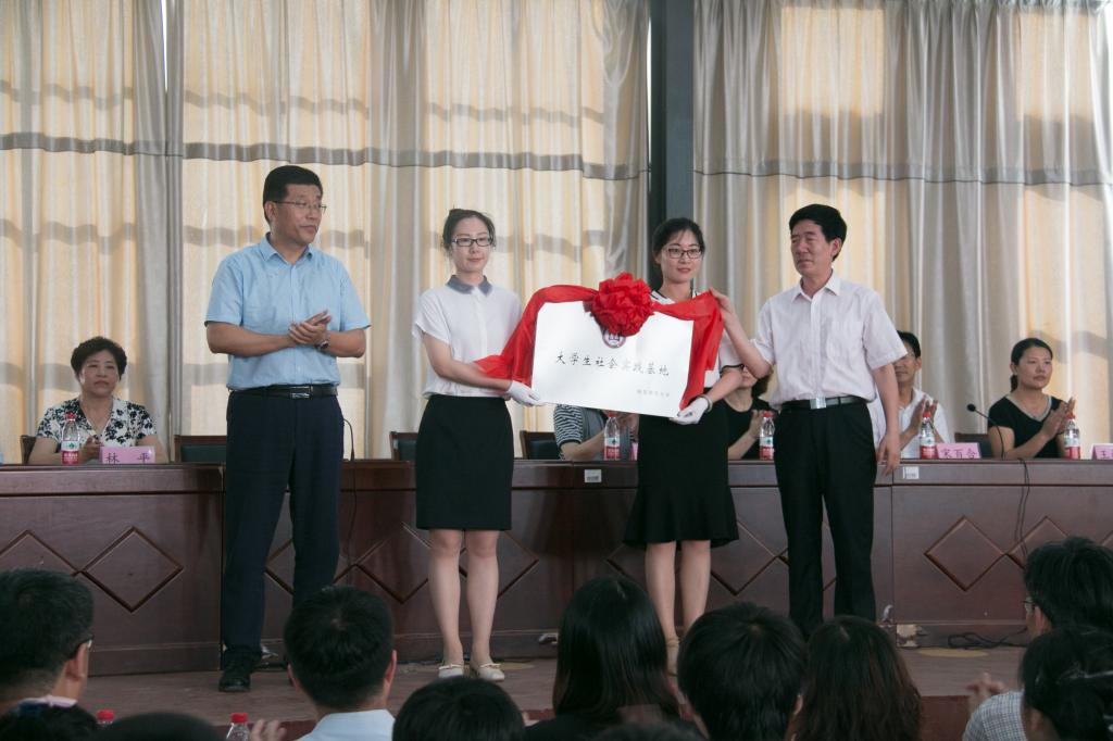 杨永明、何昭波为我校大学生社会实践基地揭牌,张书东、宋百合为完美体育(中国)官方网站教学实习基地揭牌。