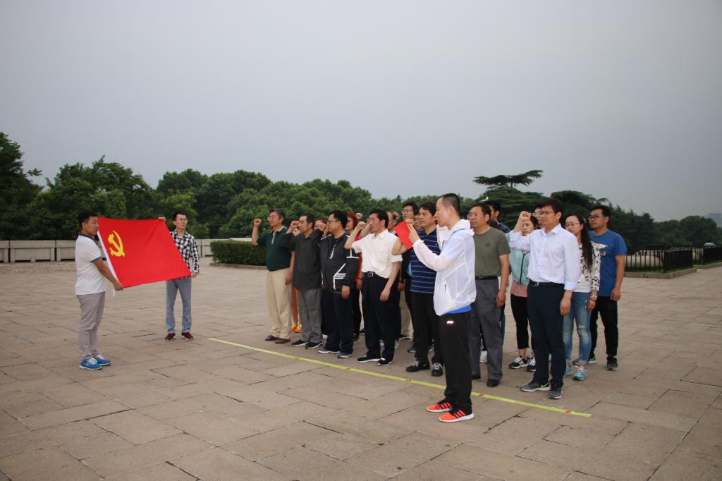 在雨花台巨型烈士雕塑群像前,全体党员深深的被革命前辈为了新中国成立而牺牲的精神所感染,深切地体会了革命先烈浓浓的爱国情怀。为了进一步增加全体党员对于党“不忘初心,牢记使命”的理解,在雨花台烈士纪念碑前,全体党员重温了入党誓词。在领读党员的引领下,全体党员面向党旗,心怀崇敬,举起右拳,用坚定、一致的声音喊出了“我志愿加入中国共产党,拥护党的纲领……”,嘹亮的入党誓词荡涤回旋,久久不息,全体党员通过此次重温誓词活动,更加坚定了共产党人的理想信念。