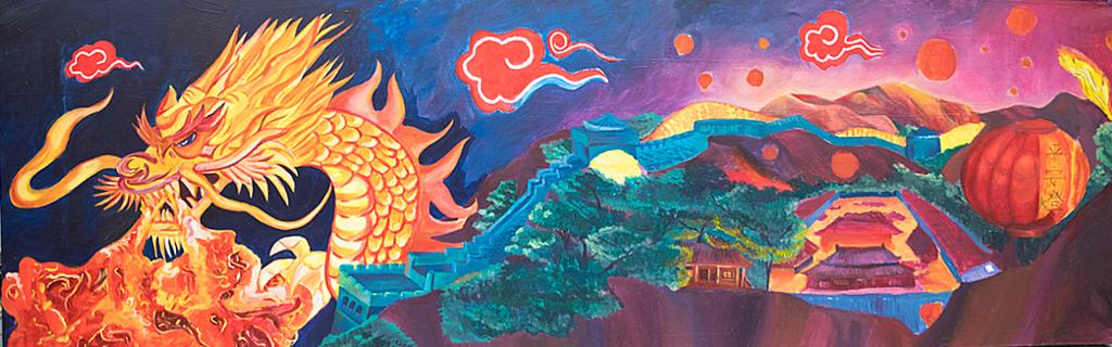 绘制过程漫长却不枯燥,孩子们创意无限,每一笔都超出我的期待。最终,“中国龙”的成品呈现在大家眼前时,只见金色长龙跃空翱翔,盘踞在巍巍长城之上,沉默中透露出威严,神态凛凛,保护着具有深厚文化底蕴的紫禁城和绿树成荫的大地。象征吉庆祥瑞的中国龙,在遥远的加拿大土地上安了家,画纸上沉默不语的龙,此刻正冲破沉默,把中国亘古不变的祝愿,带向世界;把历久弥新的祈福,传向四方。