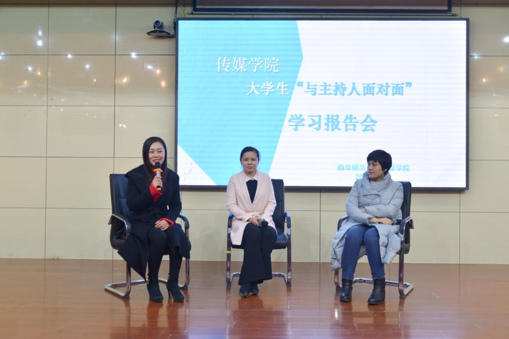 为加强学风建设,增进大学生对播音、主持、编导相关专业知识的了解,拓宽学生学业视野,1212日晚,传媒学院举行大学生与主持人面对面学习报告会。日照广播电视台广播主持人王晓、电视主持人林欣、电视编导闫春红出席报告会并担任主讲嘉宾。传媒学院师生代表参加了报告会。