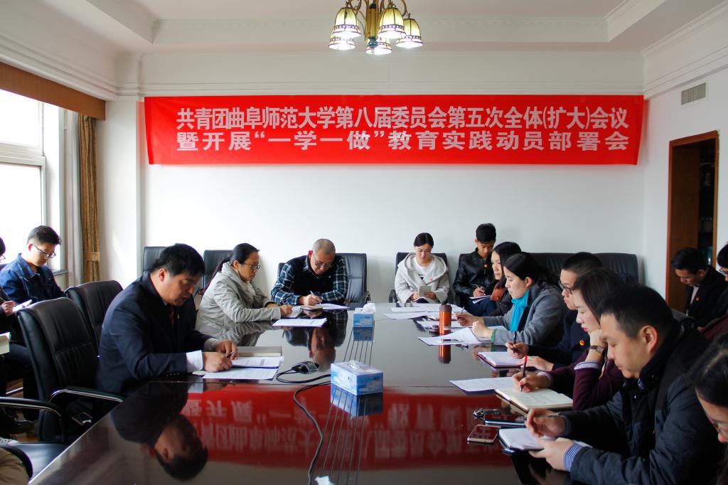 3月23日,我校共青团第八届委员会第五次全体(扩大)会议暨开展“一学一做”教育实践部署会召开,全体团委委员、各学院团委书记、学生会主席以及校团委全体人员参加了会议,会议由校团委副书记陈庆国主持。