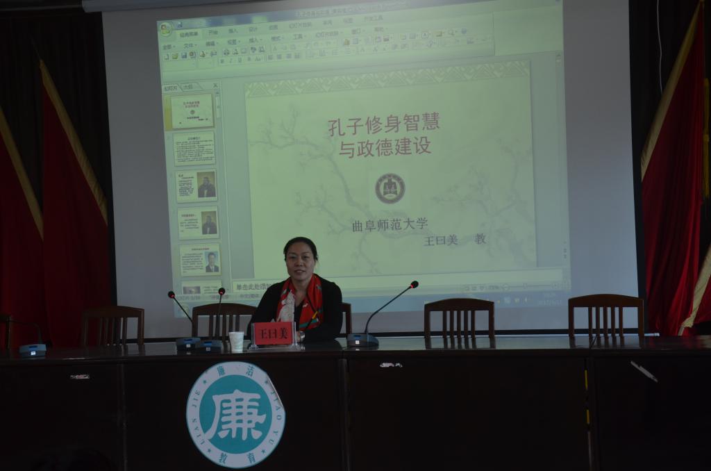 311日上午,历史文化学院全体女教工及部分党员抵达梁山县杨营镇,开展传播廉政文化和爱心帮扶活动。学院党委书记尹明法同志代表学院向杨营镇党委政府的机关干部赠送了骆承烈教授编写的《孔子论政德》一书,希望大家汲取孔子的政德思想,端正操守,做群众满意的好干部。之后,博士生导师王曰美教授为杨营镇所有机关干部以及50多个村庄的党支部书记做了题为《孔子的修身思想与政德建设》的报告,通过介绍孔子的修身思想,联系当下党风廉政建设,指出修身在政德建设过程中发挥的重要作用,希望大家能够做到知行合一,做一名合格的干部。