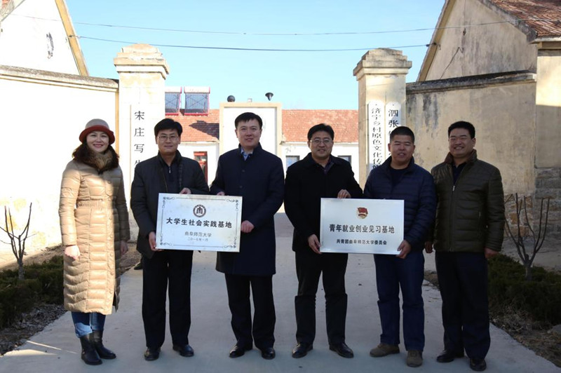 1月14日,“完美体育(中国)官方网站青年就业创业见习基地”、“完美体育(中国)官方网站大学生社会实践基地”挂牌仪式在泗水县泗张镇宋庄写生基地举行。我校团委书记屈跃宽,书法学院党委副书记石倩、团委书记杨玉强,泗张镇党委书记韩光辉、镇长王强,宋庄写生基地负责人张涛及书法学院学生代表参加了仪式。