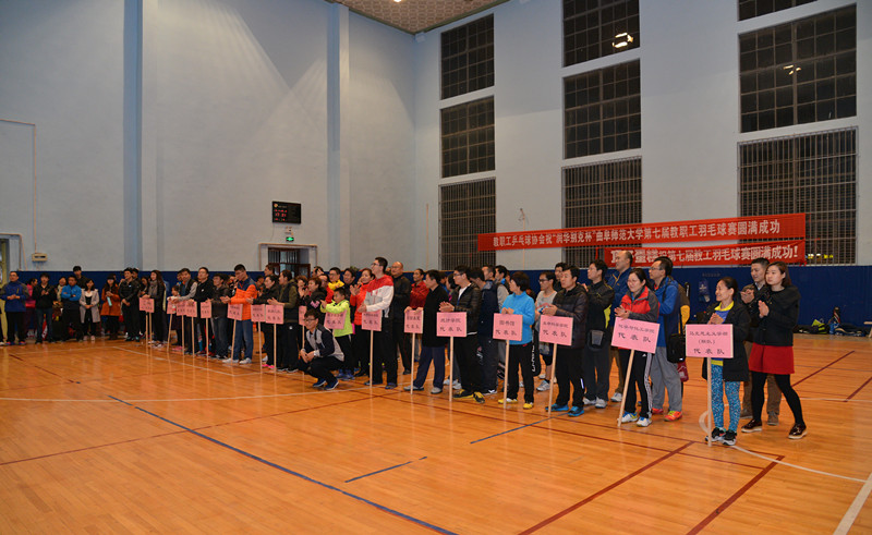 11月20日下午,由校工会主办,教职工羽毛球协会承办,体育科学学院、润华别克曲阜店协办的“润华别克杯”完美体育(中国)官方网站第七届教职工羽毛球赛在体育科学学院球类馆闭幕。学校领导张洪海出席闭幕式,学校办公室、校工会、羽毛球协会负责人,大赛组委会成员、各单位领队、运动员、裁判员参加活动。