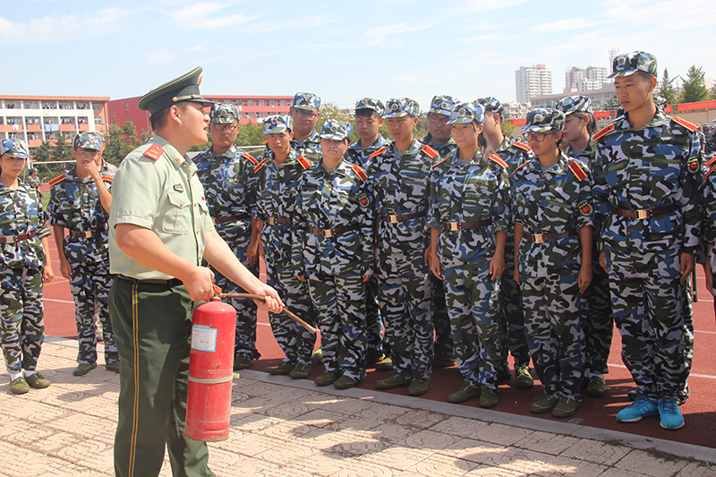 演练开始前,日照市公安消防支队防火处参谋徐梦溪在西操场为2016级军训新生进行消防安全知识培训,培训由校区公安处副处长王光江主持。徐梦溪紧密结合学校实际和消防案例,用通俗易懂的语言,生动的实例,向全体军训新生讲解日常的基本消防安全知识、校园之内有哪些防火隐患、宿舍存在哪些消防隐患、发生火灾后应如何逃生等一系列消防知识。日照市消防支队官兵介绍了干粉灭火器的使用方法和灭火要点,并让同学们进行实战演练。