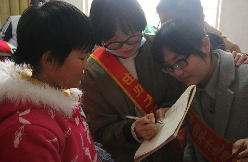 一个月中,志愿者们四次前往曲阜特殊教育学校,为同学们带去精心准备的小礼物,并带领同学们一起参与体验游戏。活动中,每位同学都由志愿者以“二对一”或“三对一”的形式辅导,虽然只能通过写字和简单的手语进行交流,志愿者们却深深感受到他们对健康的渴望和未来的憧憬。志愿者们身体力行,为同学们带来阳光正能量,为他们描述美好的大学生活,鼓励这些残疾学生坚强地学习和生活。