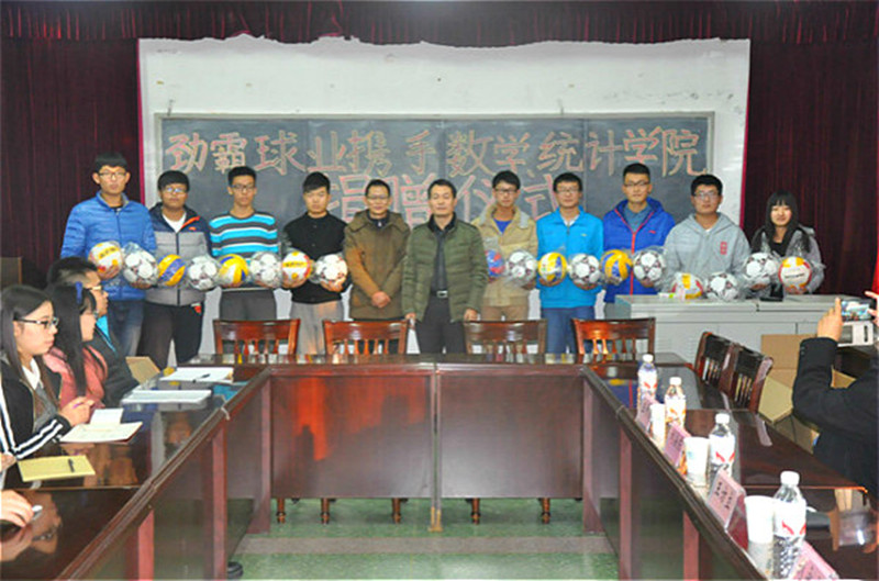 12月8日下午,我校91级校友、曲阜市劲霸球业有限公司董事长刘安东回到母校,向数学科学学院、统计学院捐赠了价值万元的足球、排球等运动器材。数学与统计学院党委书记王方立、党委副书记王作茂、团委书记刘永礼、辅导员杜晨曦、郅艳梅、李玲出席了捐赠仪式。仪式由刘永礼主持。