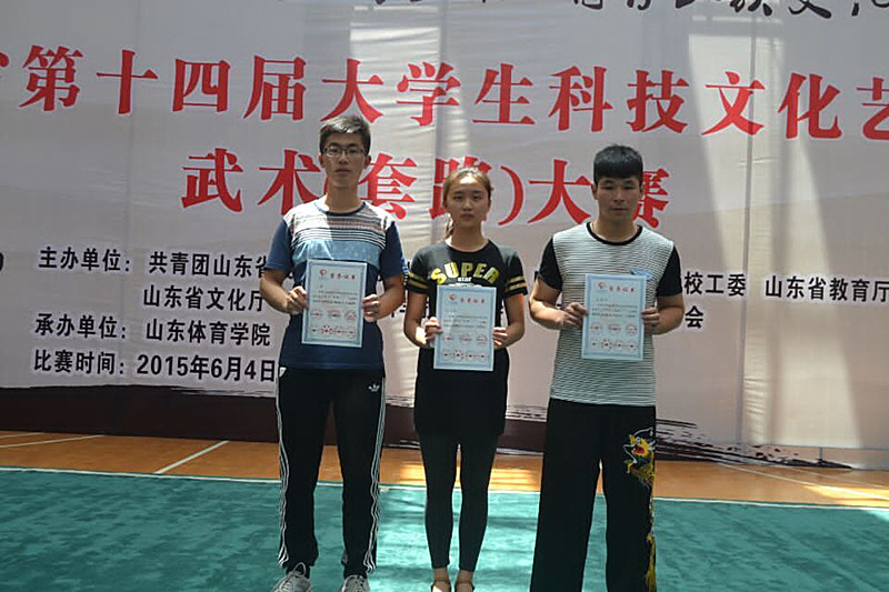 本次比赛由山东省委宣传部、省委高校工委、团省委、省教育厅、省文化厅、省科协、省学联联合举办,山东体育学院承办。有来自全省20所高校120多名运动员参加了本次比赛。我校共派出男女太极拳、棍术等5位选手参加本次比赛。
