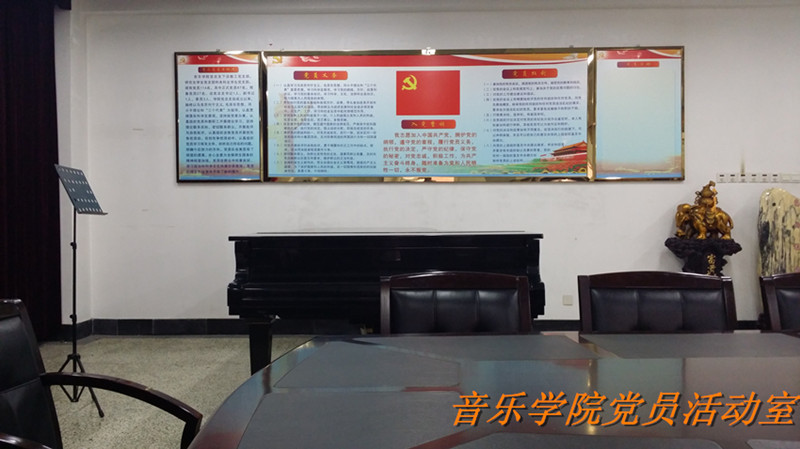 根据《关于加强服务型党组织建设的意见》和《党员活动室标准化建设方案》要求,按照主题突出、布局合理、制度规范的原则,各党总支、党支部结合自身优势和特点,建成我校首批党员活动室18个,分别是:附属中小学、离退休工作处、文学院、数学科学学院、教师教育学院、科技产业集团总公司、外国语学院、翻译学院、校医院、美术学院、电气信息与自动化学院、法学院、管理学院、计算机科学学院、经济学院、信息技术与传播学院、音乐学院、印刷学院。