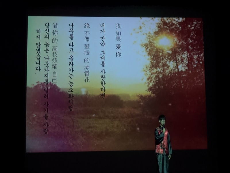 演出在中文歌曲《北国之春》中拉开序幕;在安东孔院工作的我校两名汉语教师志愿者演唱的《我的歌声里》感染了在场的每一位观众;由韩国学生朗诵的《致橡树》和《再别康桥》感人至深;随后的新版红灯舞沿承传统又不失创新;由中文系学生合唱的《朋友》引起了全场观众的大合唱;《人鱼公主》话剧表演作为晚会的重头戏,更是将晚会推向了高潮,精心独特的编排、俏皮新颖的语言博得观众的阵阵笑声。晚会在愉快的氛围中落下了帷幕。