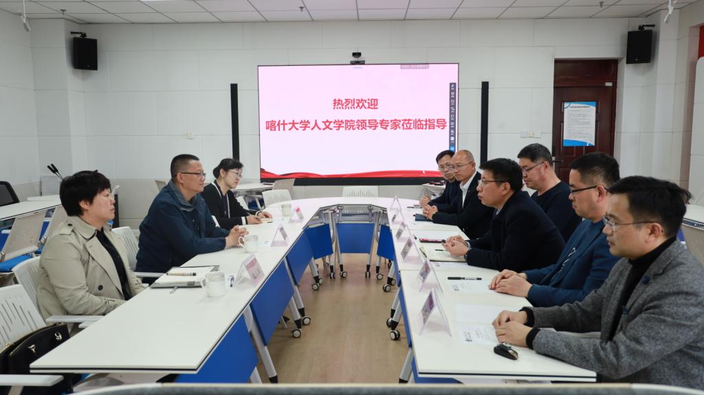 曲阜师大传媒学院讯  为巩固落实对口援疆工作成果,持续增进两地教育交流,4月2日下午,喀什大学人文学院党委书记、院长杨波一行来传媒学院座谈交流。传媒学院党委书记王宏杰、院长王焕景、党委副书记田荣林、副院长刘波、工会主席张维刚和学院教师代表参加座谈。