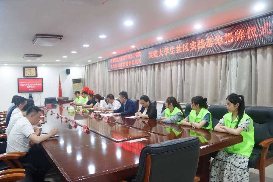 化学与化工学院党委副书记孙金玲与时庄街道新苑社区党委书记徐聪签署了社区实践基地共建协议;孔轶众与马汉卿共同为社区实践基地揭牌。