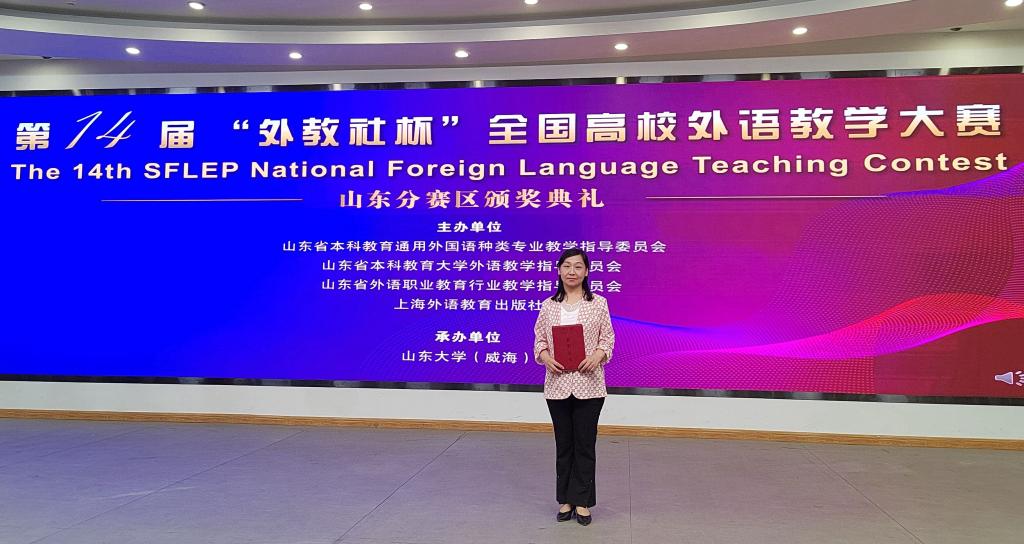 此次大赛由山东省教育厅高教处发文,山东省本科教育大学外语教学指导委员会、上海外语教育出版社主办。大赛共有省内本科大学英语组52个团队参赛,经过初赛、复赛和决赛的激烈角逐,曲阜师大大学英语团队凭借过硬的参赛实力,在比赛中脱颖而出,展示了曲阜师大大学英语教师的教学技能和外语水平。