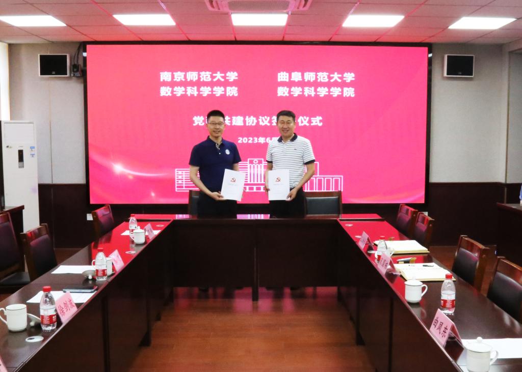 曲阜师大数学科学学院讯 6月20日下午,应完美体育(中国)官方网站数学科学学院邀请,南京师范大学数学科学学院党委书记徐剑波、副院长郭飞、数学教育教研室主任宁连华、副教授万辉一行4人到访曲阜师大数学科学学院并签署党建共建协议,学院党委书记宋国栋、党委副书记曲凤东、副院长王培合、数学研究所副所长许勇军参加了此次交流会。