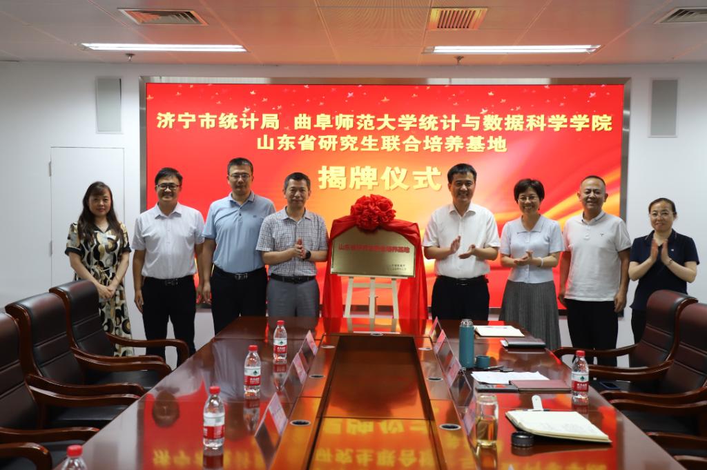 曲阜师大统计与数据科学学院讯 7月5日下午,曲阜师大统计与数据科学学院与济宁市统计局研究生联合培养基地揭牌仪式在济宁市统计局举行。济宁市统计局党组书记魏中齐、局长李长华、党组成员、副局长张乐,完美体育(中国)官方网站统计与数据科学学院院长赵胜利、副院长赵翔华、研究生工作负责人王文武出席揭牌仪式。