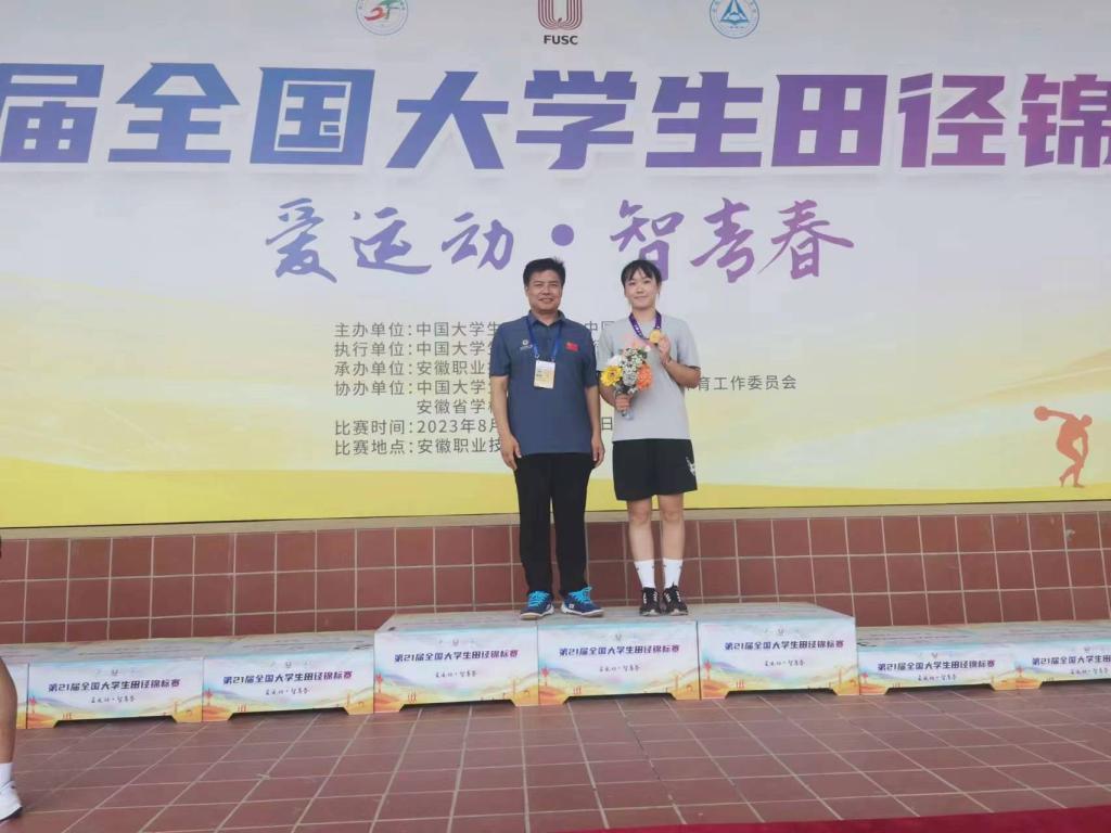 曲阜师大体育科学学院讯 8月12日,在第21届全国大学生田径锦标赛女子丁组标枪比赛中,曲阜师大2022级运动训练专业学生盖巧慧代表学校参赛并夺得冠军、达标健将。