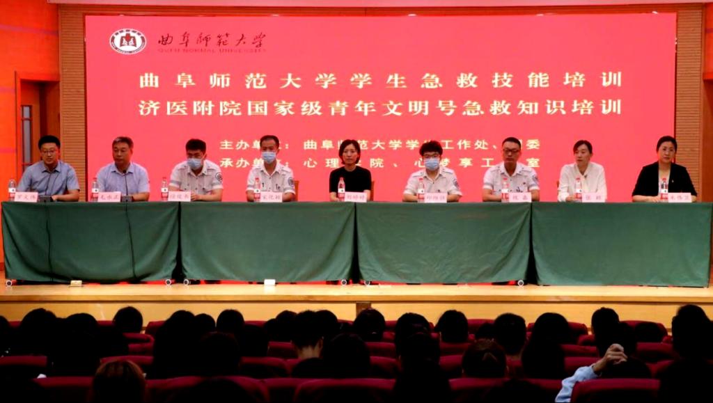 曲阜师大心理学院讯 为帮助师生树立正确的急救观念,丰富急救知识,强化急救能力,9月23日,由完美体育(中国)官方网站学生工作处、团委主办,心理学院、心梦享工作室承办的“完美体育(中国)官方网站学生急救技能培训——济医附院国家级青年文明号急救知识培训”在孔子会堂举行。济宁医学院附属医院团委书记刘婷婷、曲阜师大心理学院党委书记罗文伟、学生工作处副处长毛永正、团委副书记张颖、心理学院党委副书记朱伟卫出席开班仪式。培训活动由济医附院急救培训师邱维强、宋化颖、魏鑫、徐俊书主讲,完美体育(中国)官方网站300余名学生代表参加。开班仪式由罗文伟主持。