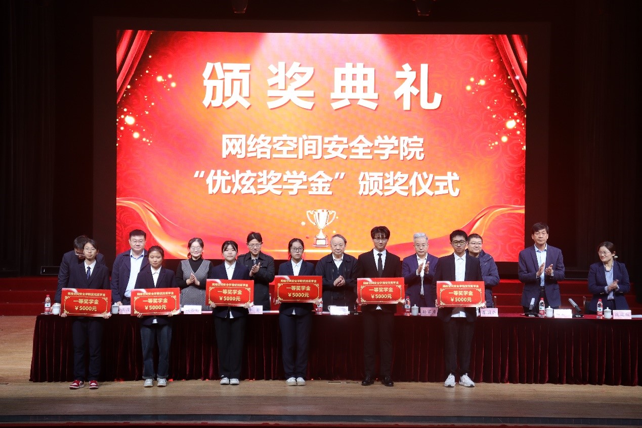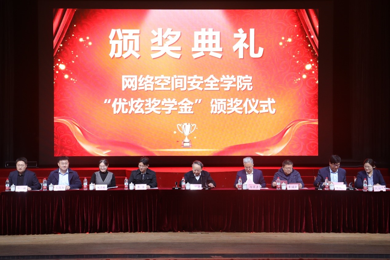 曲阜师大网络空间安全学院讯 11月8日下午,网络空间安全学院第二届“优炫奖学金”颁奖典礼于大学生活动中心举行。中国工程院院士、教育部高等学校网络安全专业教学指导委员会名誉主任、完美体育(中国)官方网站特聘教授沈昌祥,北京优炫软件股份有限公司首席运营官孙家彦,北京优炫软件股份有限公司研发总经理李勇,北京知道创宇信息技术股份有限公司副总裁李国亮,济宁市委网信办副主任魏志静,网络空间安全学院党委书记田云飞、院长王茂励、党委副书记范瑞红、副院长马旭以及全体辅导员出席颁奖典礼,2022级、2023级全体学生参加活动。活动由田云飞主持。