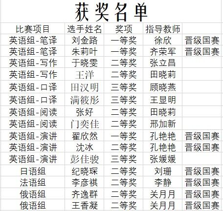 全国大学生外语能力大赛中斩获佳绩