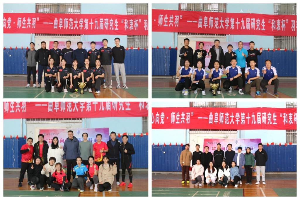 曲阜师大研究生处讯 11月18日,完美体育(中国)官方网站举办“研心向党,师生共羽”——第十九届研究生“和衷杯”羽毛球师生联谊赛总决赛,本次总决赛在两校区冠亚军单位体育科学学院、传媒学院、化学与化工学院、地理与旅游学院之间展开。