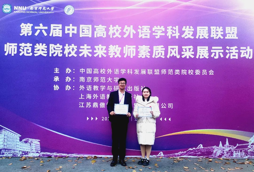曲阜师大外国语学院讯 12月1日-12月2日,第六届“中国高校外语学科发展联盟师范类院校未来教师素质风采大赛”举行。曲阜师大外国语学院2020级张男纪元、王晴在高歌老师的悉心指导下认真备赛,经过教案设计、模拟授课、才艺展示几个环节的比拼,最终获得二等奖。