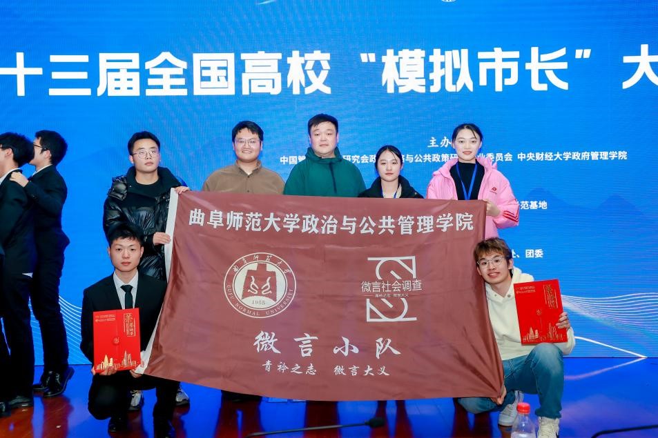 在政治与公共管理学院教师尹雷的指导下,学院政治学与行政学专业学生王志超、王卓嘉、吴慧舒、李文昊、余恒组成“微言小队”代表山东赛区参加比赛。比赛中学院学生锐意进取,力压群雄,一举夺得全国第四名的好成绩,荣获全国二等奖,并单独斩获“最佳风采奖”。