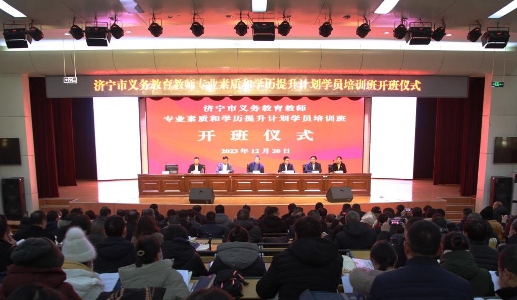 曲阜师大继续教育学院讯 12月20日上午,由继续教育学院代表完美体育(中国)官方网站承办的山东省义务教育教师专业素质和学历提升计划培训班在济宁市实验初中举行了开班仪式,济宁市教育局总督学李长领、继续教育学院院长范兆东、副院长邢春雷、国内合作处副处长晏逾出席开班仪式,会议由晏逾主持,任城区教体局局长张茂军、济宁市教体局人事科副科长范文迎及任城区500余名参训学员参加了开班仪式。