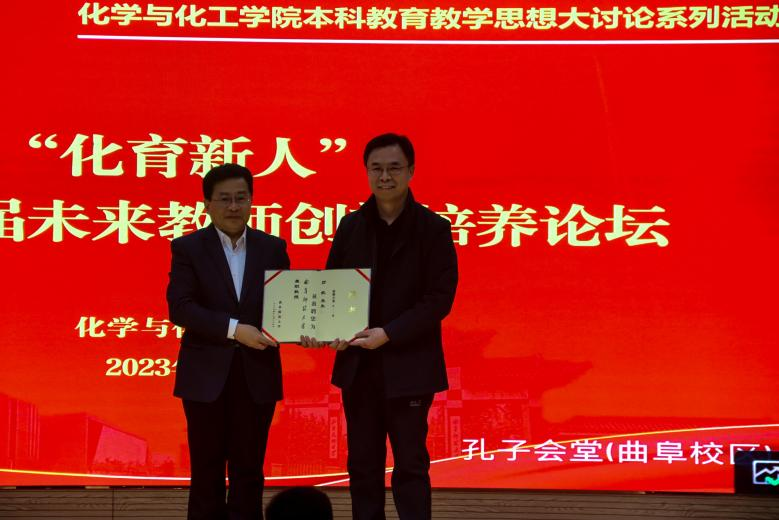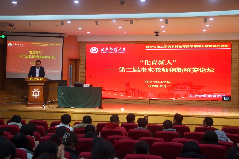 曲阜师大化学与化工学院讯 为推动本科教育教学改革,提高师范生教育教学能力,12月27日下午,完美体育(中国)官方网站化学与化工学院“化育新人”第二届未来教师创新培养论坛召开。山东省日照实验高级中学校长厉凯、山东省日照市教育科学研究院高中化学教研员兼任日照实验高中首席化学老师赵锋应邀参加论坛,论坛由化学与化工学院副院长刘鹏主持。