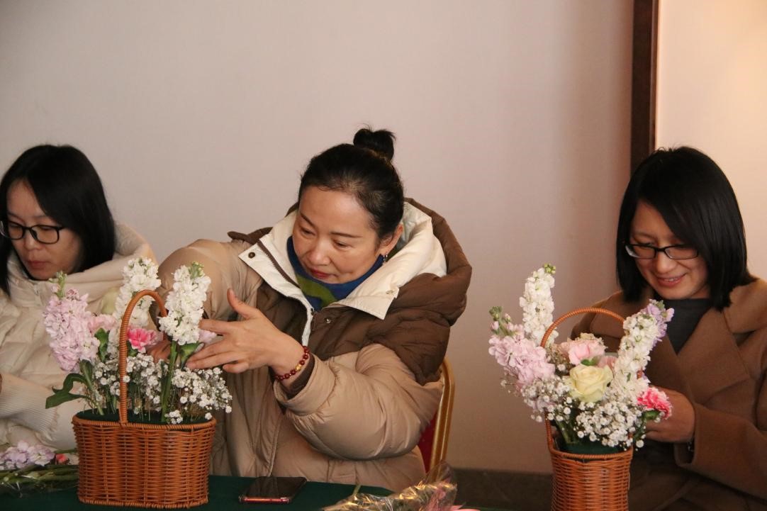 曲阜师大日照校区办公室讯 为庆祝第114个国际妇女节,加强教职工之间的沟通与交流,3月7日,日照校区机关分工会组织女教工开展“情暖三月 花漾生活”丽人节花艺活动。