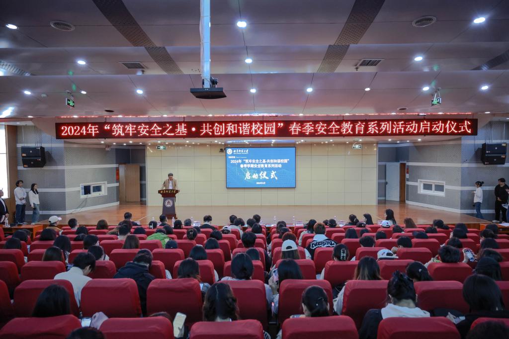 传媒学院讯  为进一步树立学生安全防范观念,增强学生安全防范能力,维护校园安全稳定,3月30日上午,传媒学院举行“筑牢安全之基·共创和谐校园”——2024年“平安传媒”春季学期安全教育系列活动启动仪式暨心理健康讲座活动。传媒学院党委书记田维柱、日照校区党委副书记兼日照校区办公室副主任刘天浩、学生工作处副处长曲涛、保卫处副处长王光江、后勤管理处副处长王睿、日照校区学生心理健康教育与咨询中心主任陈学宁、传媒学院团委书记张守荣以及全体辅导员出席活动,2023级全体学生参加活动。活动由传媒学院党委副书记田荣林主持。