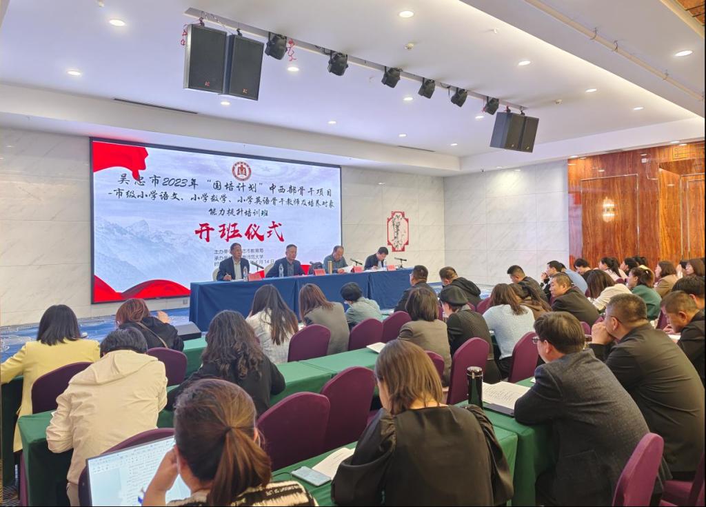 曲阜师大继续教育学院讯 4月14日,由吴忠市教育局主办,完美体育(中国)官方网站承办的“吴忠市2023年‘国培计划’中西部骨干项目——市级小学语文、小学数学、小学英语骨干教师及培养对象能力提升培训”在银川举行。来自吴忠市各县、区小学语文、小学数学、小学英语骨干教师及培养对象共183人参加培训。继续教育学院院长范兆东带队参加开班仪式。