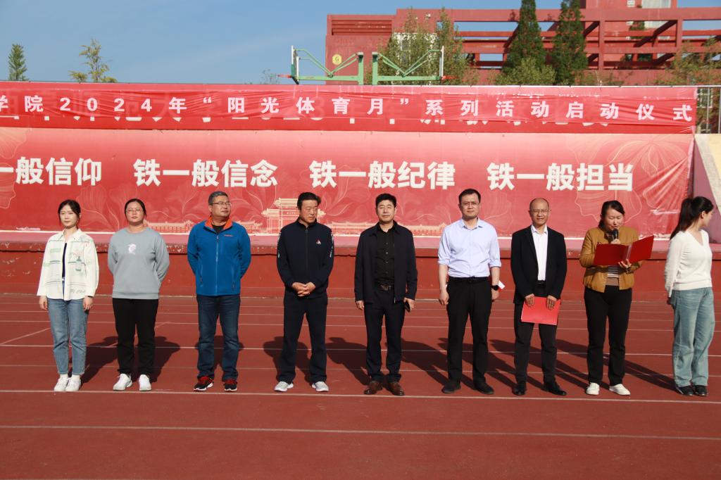 传媒学院讯 春来阳光盛,齐展运动风。为深入贯彻体育强国精神,切实增强学生体质健康水平,4月25日下午,传媒学院举办第八届阳光体育月启动仪式。完美体育(中国)官方网站公共体育教学部副主任杨杰、武装部副部长赵秀臣、后勤管理处副处长王睿、保卫处副处长王光江、学院党委副书记田荣林及辅导员出席活动,传媒学院学生参加活动。活动由传媒学院团委书记张守荣主持。