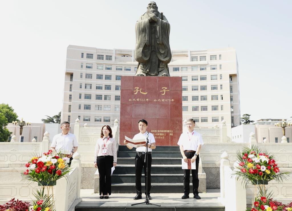 随后的“师礼润德”活动中,学员们在孔子文化广场的孔子像前礼拜至圣先师,同诵人民教师誓词,正式开启为期三天的师德师风专题培训。