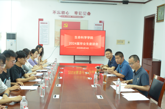 曲阜师大生命科学学院讯  为用心用情做好2024届毕业生离校工作,更好地倾听毕业生心声,厚植毕业生感恩奉献之情,引导毕业生积极为学院发展建言献策,6月14日上午,生命科学学院召开2024届毕业生座谈会暨校友联络员聘任仪式。学院党委书记李志广、院长王仁君出席会议,2024届毕业班辅导员杨申振、袁晓涵及部分毕业生代表参加了座谈会。座谈会由学院党委副书记王建龙主持。