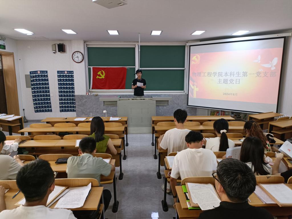 筑牢廉洁思想堤坝,开展党纪学习教育主题党日活动。610日至15日,物理工程学院各党支部开展贯彻“学纪、知纪、明纪、守纪”总要求的党性教育活动。党支部书记以“廉洁从业”为题为毕业生党员开展离校前党性教育活动,深入阐释了全面从严治党的重大意义,并结合典型案例,警示同学要勤弹“思想尘”、多思“贪欲害”、常破“心中贼”、慎独慎微,启迪同学们走上工作岗位后要涵养廉洁自律的道德修为,心有所畏,言有所戒,行有所止,并不断锤炼意志力、自制力,谨记职业道德,筑牢思想防线,走好职业生涯第一步。