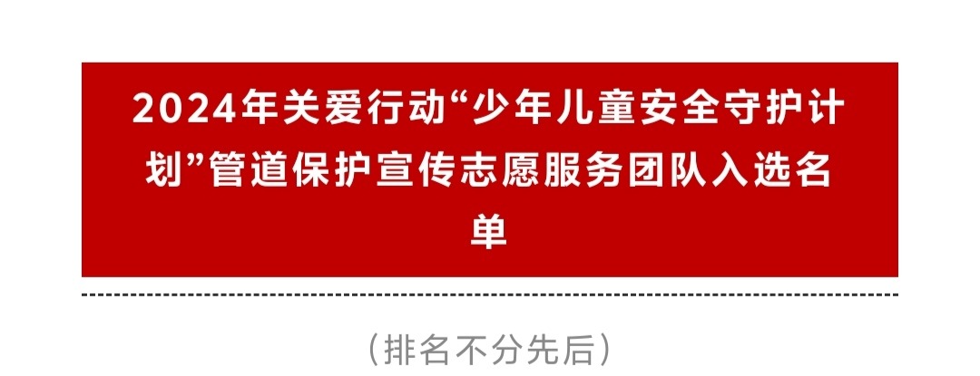 曲阜师大历史文化学院讯 近日,2024年关爱行动“少年儿童安全守护计划”志愿服务团队遴选工作结束,我校历史文化学院“管道安全小喇叭队”和“春和景明志愿服务队”在众多高校志愿服务团队中脱颖而出,成功入选。