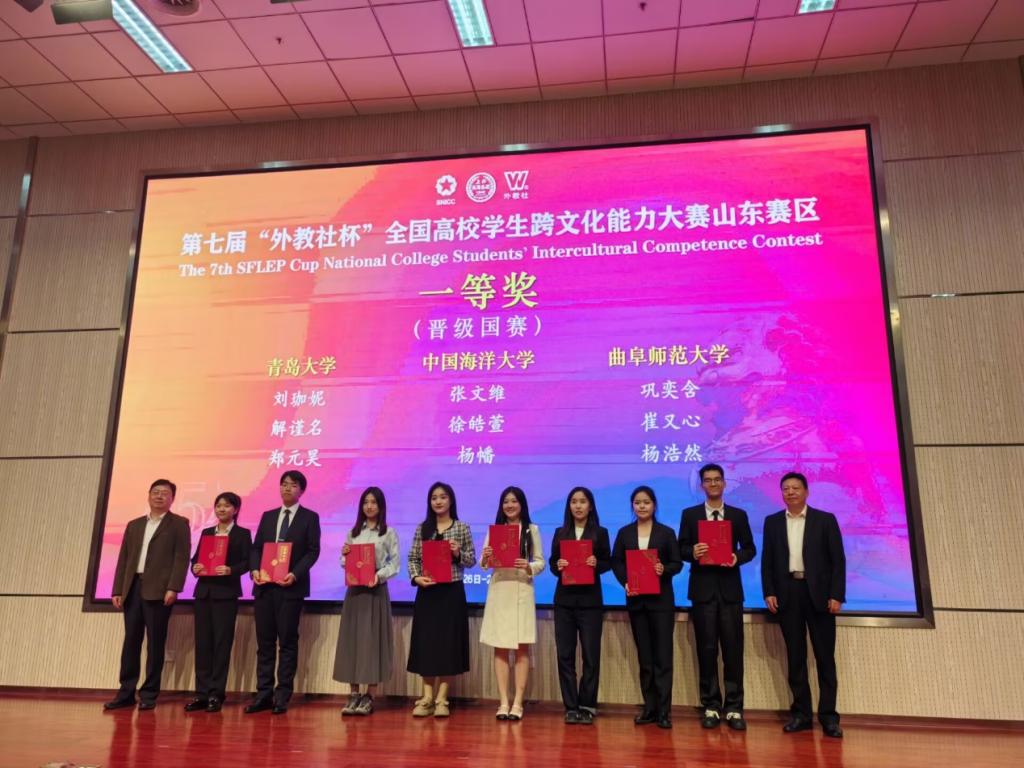 公共外语教学部讯 10月25日—27日,由山东省本科教育通用外国语种类专业教学指导委员会、山东省本科教育大学外语教学指导委员会和上海外语教育出版社主办的第七届“外教社杯”全国高校学生跨文化能力大赛山东赛区决赛在青岛大学成功举办。完美体育(中国)官方网站代表队以优异的成绩荣获一等奖,并晋级国赛。
