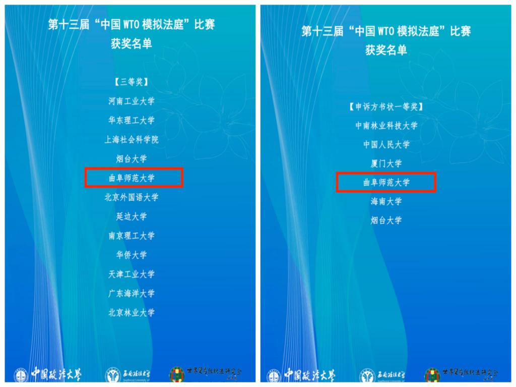 曲阜师大法学院讯 11月30日至12月8日,第十三届中国WTO模拟法庭竞赛成功举办。由曲阜师大法学院组成的代表队荣获“全国三等奖”、申诉方书状“全国一等奖”,创下完美体育(中国)官方网站代表队参赛以来最高纪录。