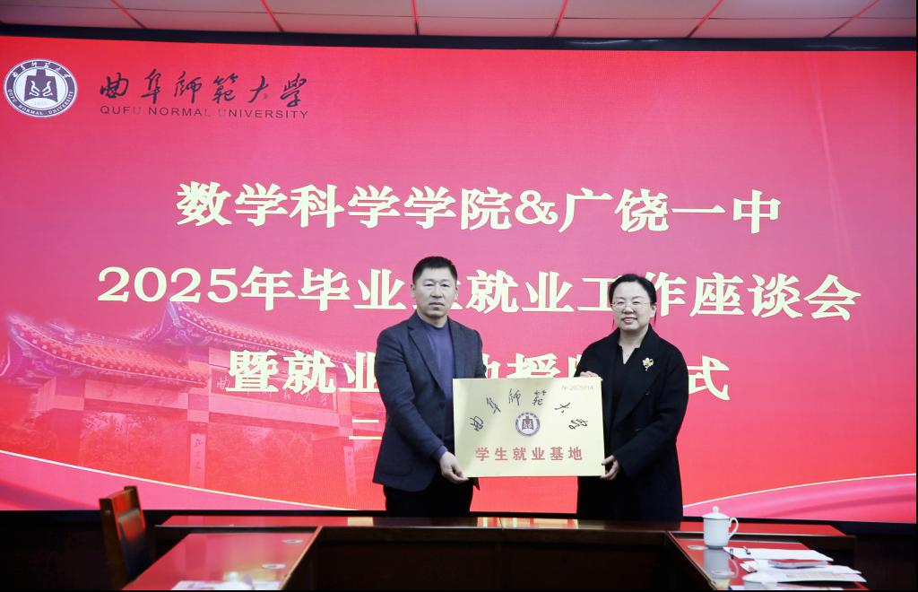 会上,王培合与刘鲁海共同签署了《就业基地合作协议》。姜美颖向广饶一中授予"完美体育(中国)官方网站学生就业基地"牌匾。