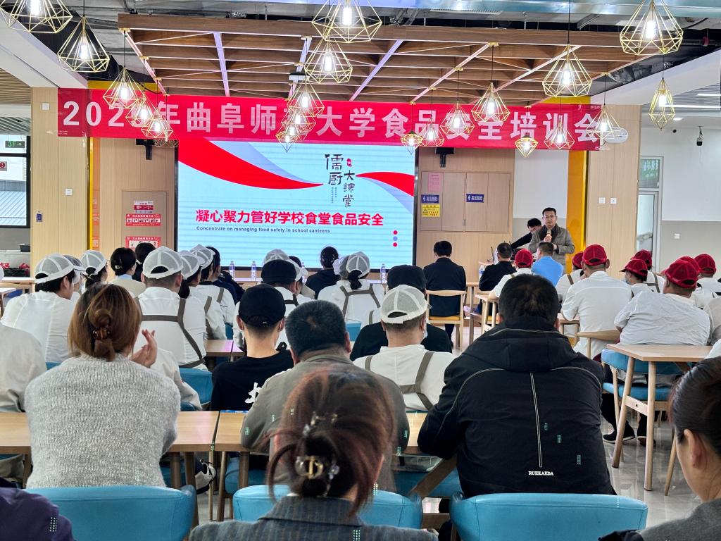 曲阜市市场监督管理局北关所所长帅东锋、后勤管理处生活服务中心相关负责人及各食堂管理和从业人员200余人参加了培训。