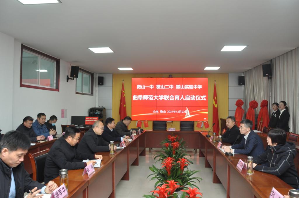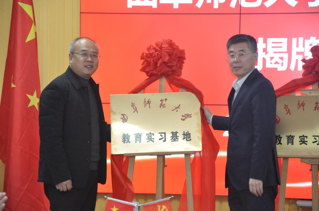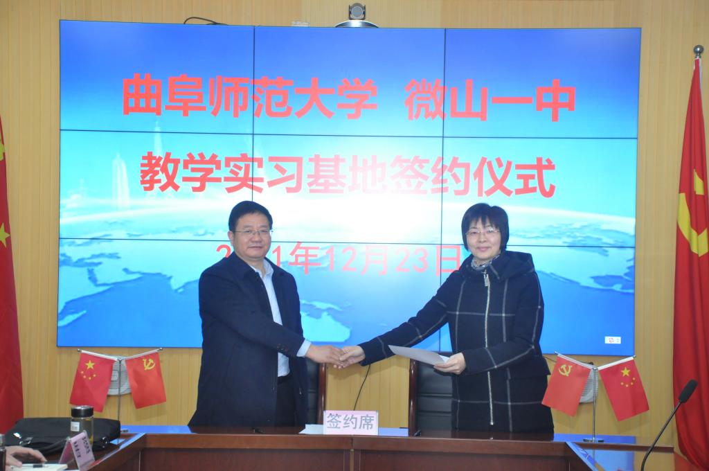 曲阜师大新闻中心讯 12月23日上午,曲阜师大化学与化工学院和微山一中、微山二中、微山实验中学在微山县教育和体育局签署联合育人协议,并为三所教育实习基地揭牌。化学与化工学院党委书记赵琪,院长冯媛媛,学生工作处副处长毛永正,化学院副院长刘鹏,微山县教体局局长王志刚,微山一中校长李锰,微山一中党委书记李伟,微山二中校长岳强,微山县实验中学校长徐军华以及微山县教体局的其他领导一并出席了仪式。仪式由微山一中校长李锰主持。