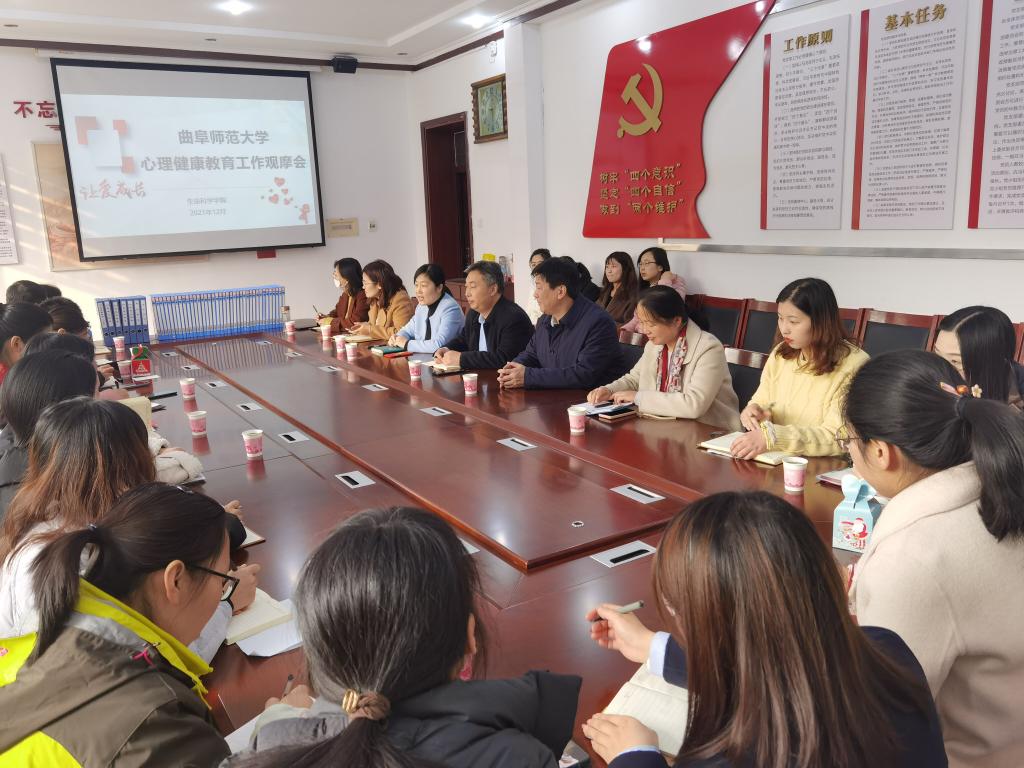 曲阜师大新闻中心讯(通讯员:苗洪霞 陈学宁)为全面落实全省学校安全会议和我校安全工作专题会议精神,进一步做好学生心理健康教育工作,切实保障学校和师生安全,12月9日上午,学生工作处分别在两校区开展学院心理健康教育观摩。学生工作处副处长毛永正、曲涛分别带队走进化学与化工学院、生命科学学院、工学院、计算机学院实地观摩心理健康教育工作,各学院副书记、心理辅导员以及学校心理健康教育与咨询中心教师共同参加了观摩。