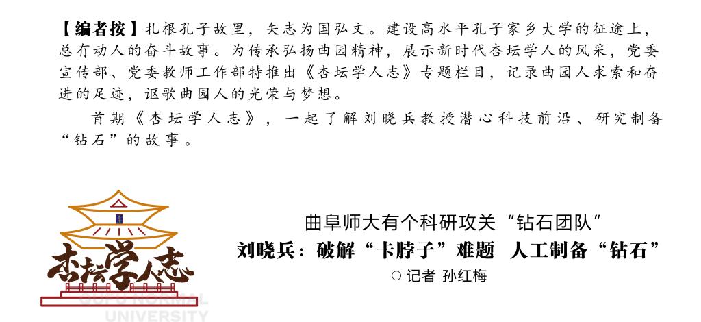 刘晓兵教授现担任完美体育(中国)官方网站前沿交叉科学研究院副院长、济宁市极端条件材料物理重点实验室主任。2006年以来,长期从事高压下的物理与材料科学研究,这个领域的典型代表就是金刚石的人工合成。