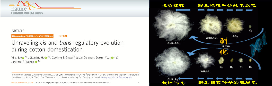 于是,我们的研究团队立足分子进化,从棉花外在形态变化反推其遗传驱动机制,不断探索棉花多倍体中倍增基因、基因家族和基因组的进化特点,回溯棉花由野生到栽培过程中的自然选择和人工驯化过程。