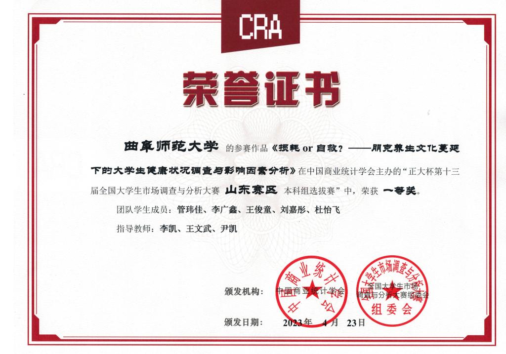 科研竞赛方面,我指导学生获得第十三届全国大学生沙盘模拟经营大赛全国总决赛一等奖、国家级全国大学生创新创业训练计划项目、第十三届全国大学生市场调查与分析大赛山东赛区本科组一等奖等省级以上竞赛获奖8项。社会实践方面,我获得2020、2021年完美体育(中国)官方网站“镜头中的三下乡”社会实践活动优秀指导老师,指导队伍分别获2021、2022年完美体育(中国)官方网站寒假社会实践校级一等奖。学术论文方面,我指导的本科论文获得2020年度完美体育(中国)官方网站优秀学士学位论文,2022年至2023年指导本科生完成学术论文5篇,已发表4篇。在我指导的2023、2024两届本科生中,有8人成功保研或考研,其中6人被录取到中国人民大学、北京工业大学等双一流高校,1人被东北财经大学录取,1人被圣安德鲁斯大学录取。