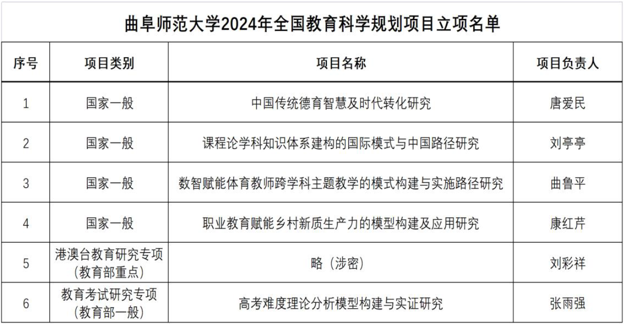 曲阜师大获批6项2024年度全国教育科学规划项目