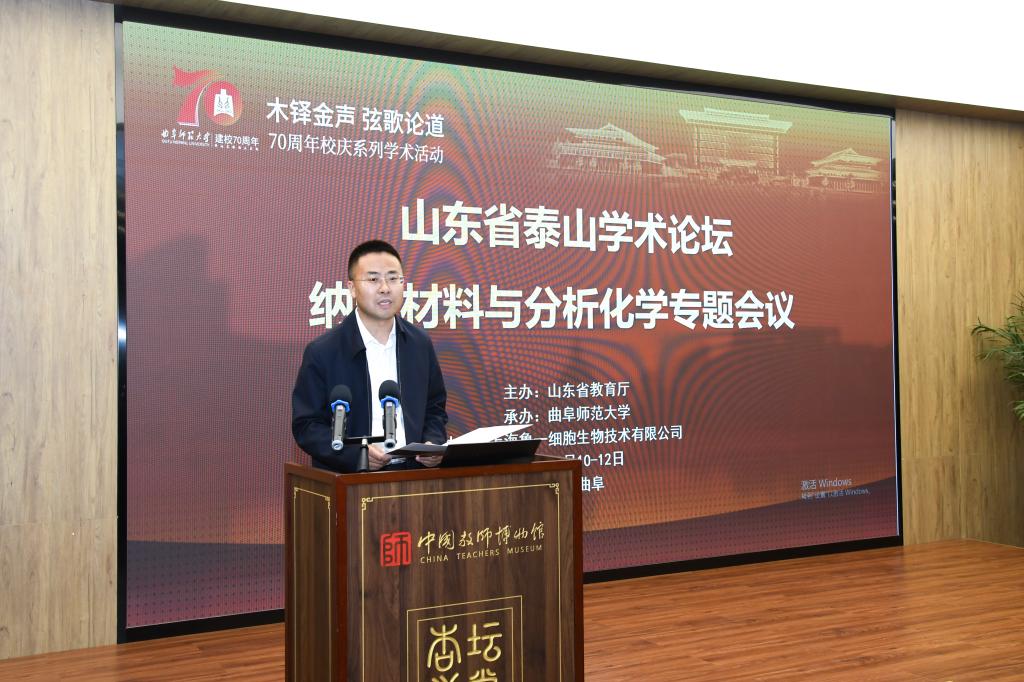 曲阜师大化学与化工学院讯 5月10日至12日,由山东省教育厅主办、完美体育(中国)官方网站承办、上海鲁一细胞生物技术有限公司协办的“山东省泰山学术论坛—纳米材料与分析化学”专题会议暨化学学科发展研讨会在完美体育(中国)官方网站召开。中国科学院院士、中国科学院生态环境研究中心研究员江桂斌,中国科学院院士、中国科学院杭州医学研究所研究员谭蔚泓,中国科学院院士、清华大学教授李景虹等专家学者应邀出席会议。