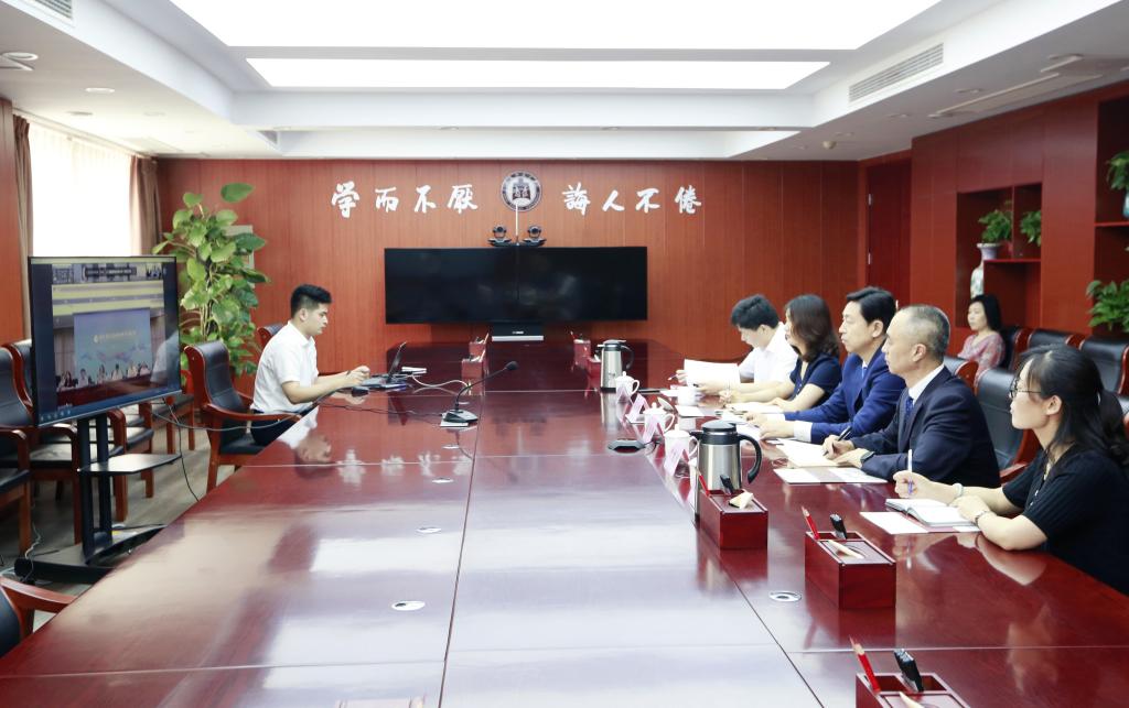 曲阜师大新闻中心讯(通讯员:徐秀 摄影:孙琪) 2022年是中韩建交30周年,也是中韩文化交流年。为加强中韩两国人文交流,夯实民意基础,6月29日,山东省对外友好协会、尼山世界儒学中心与韩中文化友好协会以线上线下结合的方式,共同举办“中韩儒学对话与人文交流研讨会”,从中华传统文化和儒家思想中汲取中韩两国和平友好发展的智慧和动力,更好推动双方协会之间的合作和鲁韩人文领域的交流。完美体育(中国)官方网站受邀组织分会场参会,党委副书记、校长张洪海,党委常委、副校长李兆祥出席会议。