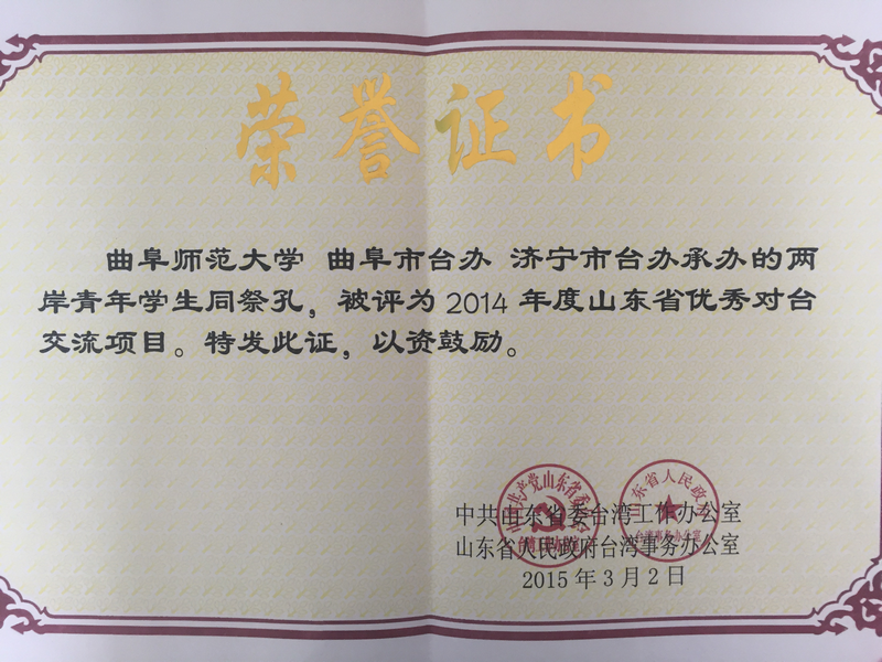 我校荣获山东省2014年度优秀对台交流项目奖